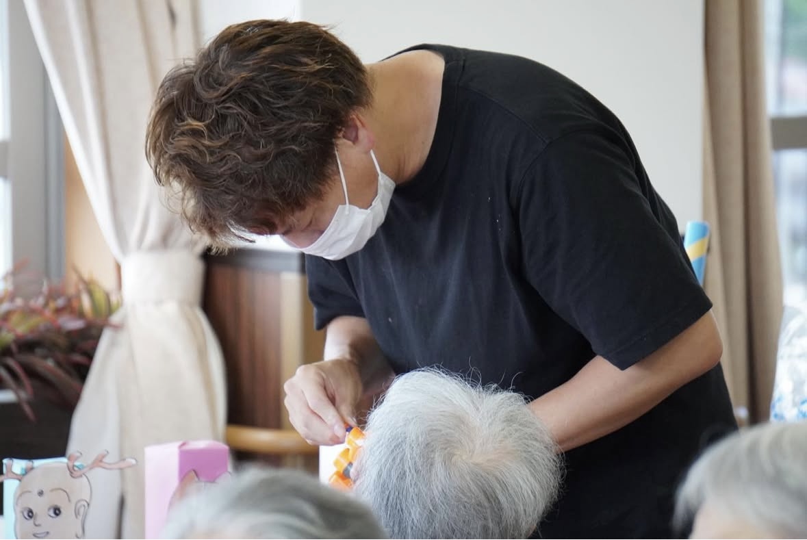 中でも施設のまん前が発射場という素晴らしいロケーションに恵まれた彦根大花火大会。その日に合わせて行う「千松の郷夏祭り」は当施設一番のイベントです。入居者様や、そのご家族、またワーカーの家族も参加可能で、目前に打ち上げられる花火見物や、ワーカーによる屋台、厨房提供のバイキング料理など大きな賑わいを見せております。